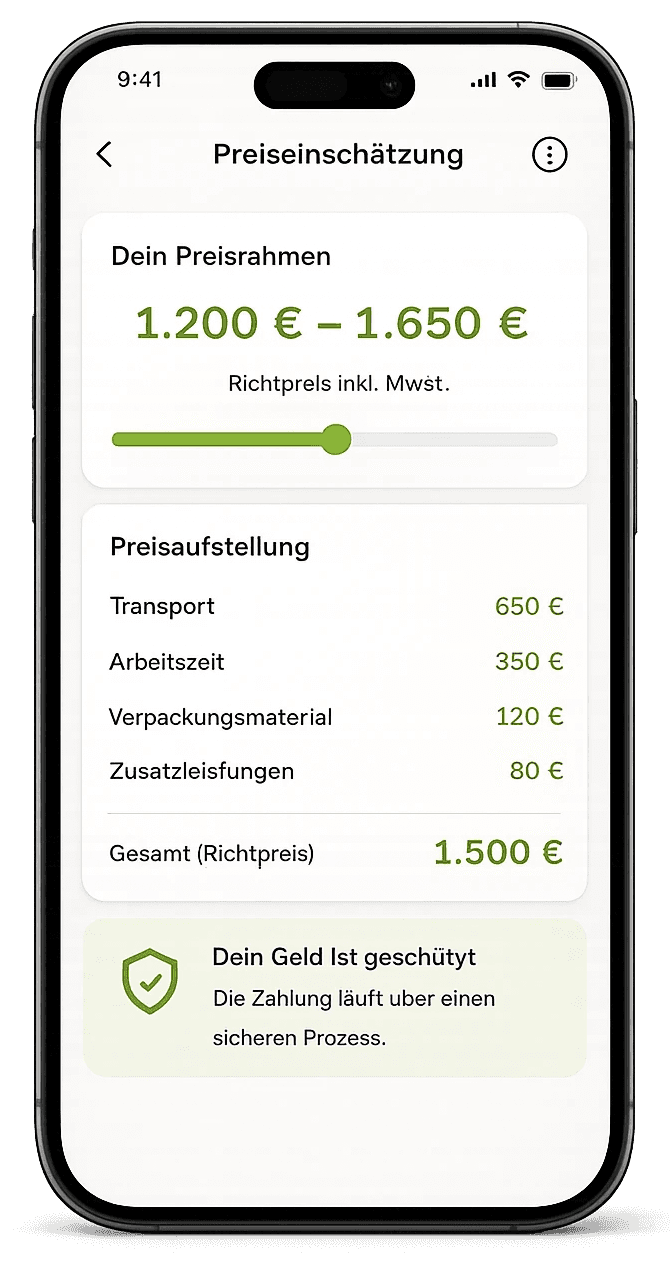 Du erhältst sofort eine erste Preisorientierung, basierend auf deinen Angaben.